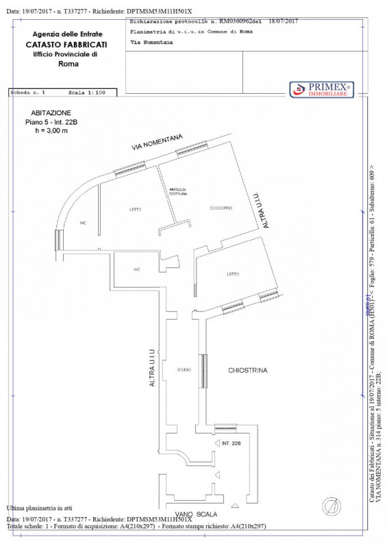 VENDESI APPARTAMENTO POSTO AL PIANO 5° SENZA SPAZI ESTERNI